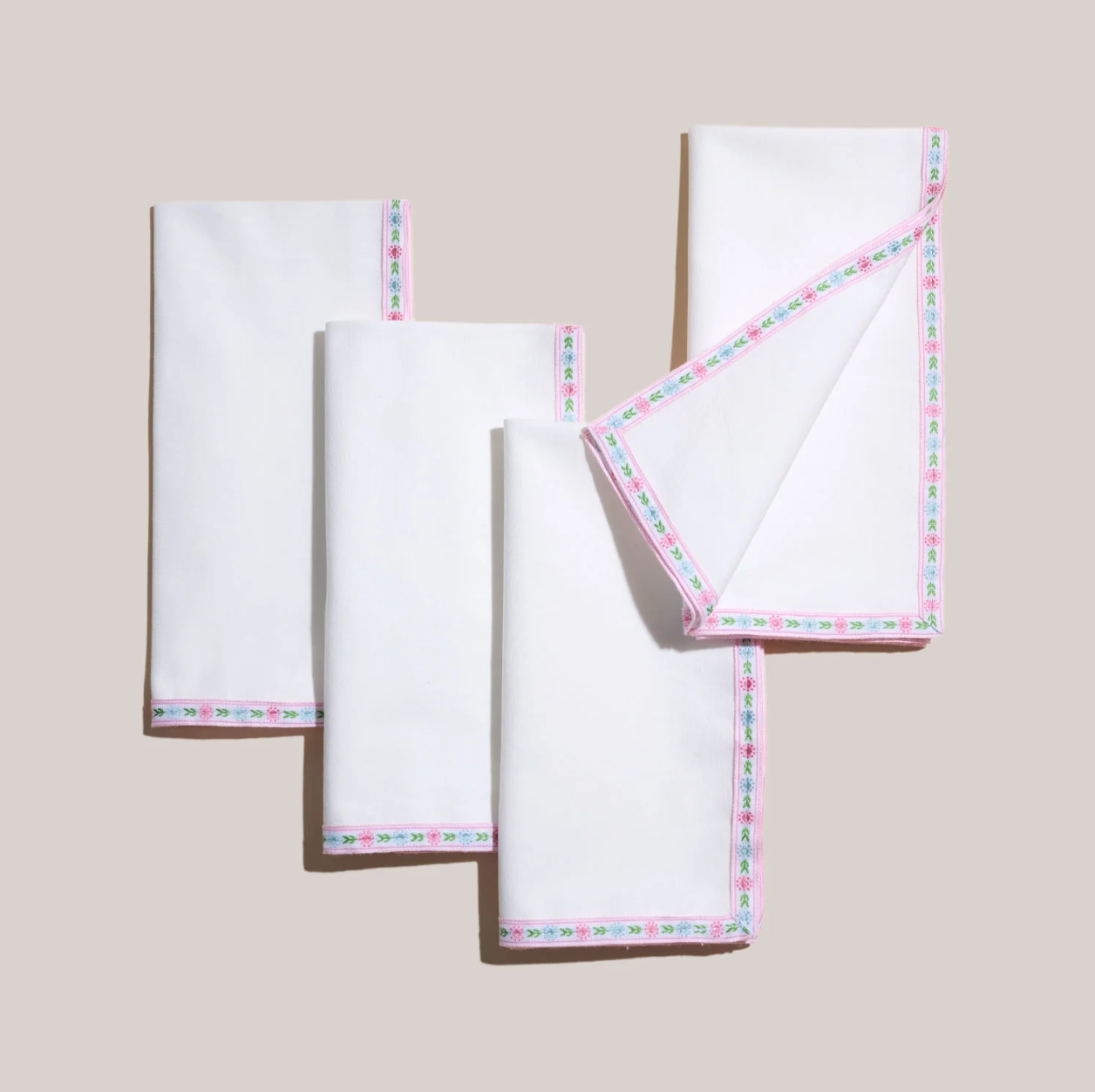 Our Enchanted Twill Napkin Set introduces a captivating transformation of our best-selling Signature White Twill into a pastel paradise. Elevate your dining experience with these charming table linens adorned with a jacquard floral trim, setting a new standard for your classic white napkin.