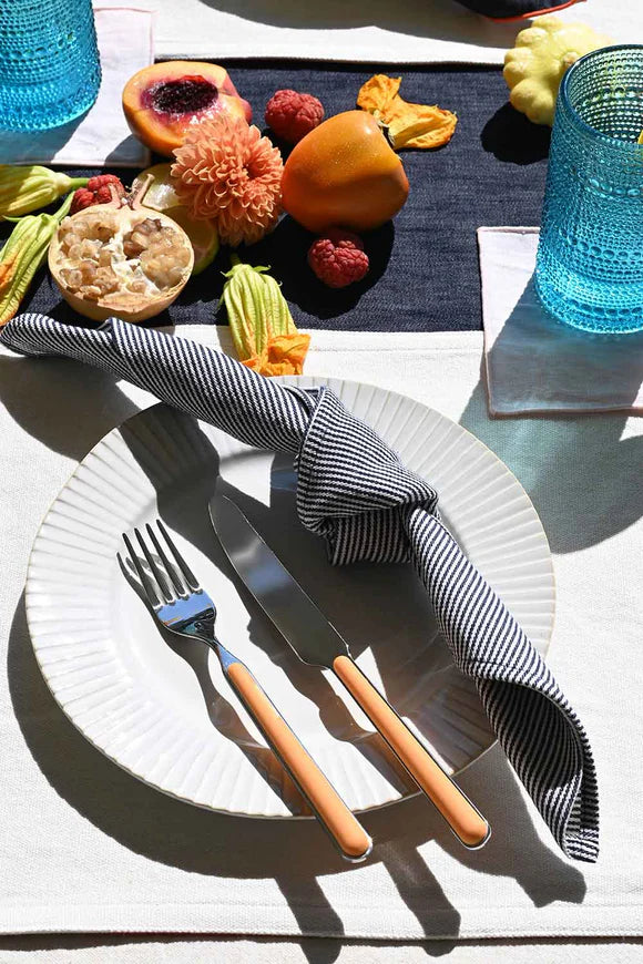 Our hickory striped linens are constructed from the same durable, breathable fabric that was seen on the peaked caps of train conductors and overalls adorning butchers and oil workers in the Old West. These distinguishing stripes have made their way back to become one of the most sought after denims in the game, and one of our best-selling ‘kins.