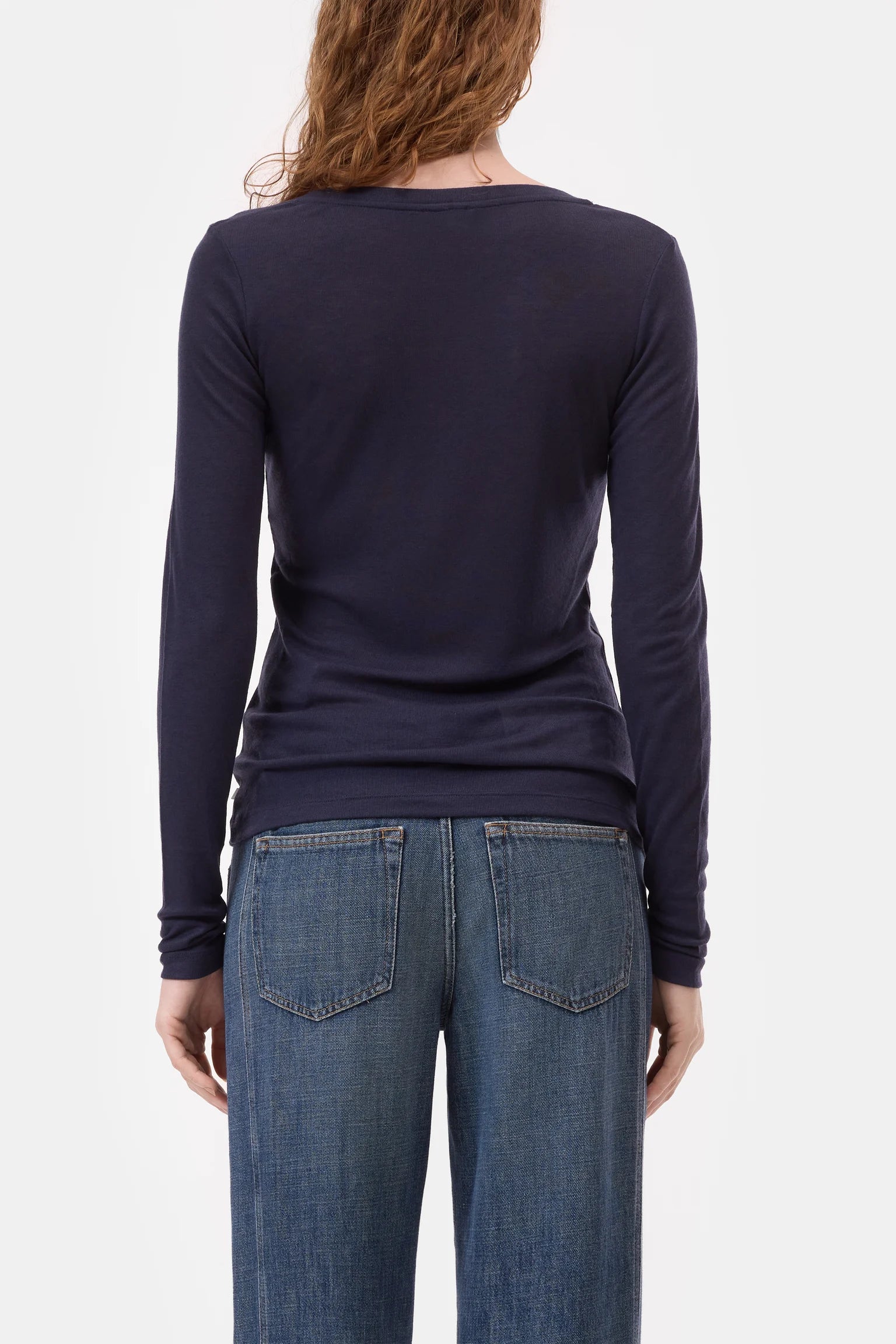 DEEP NECK LONG SLEEVE TEE DARK NIGHT