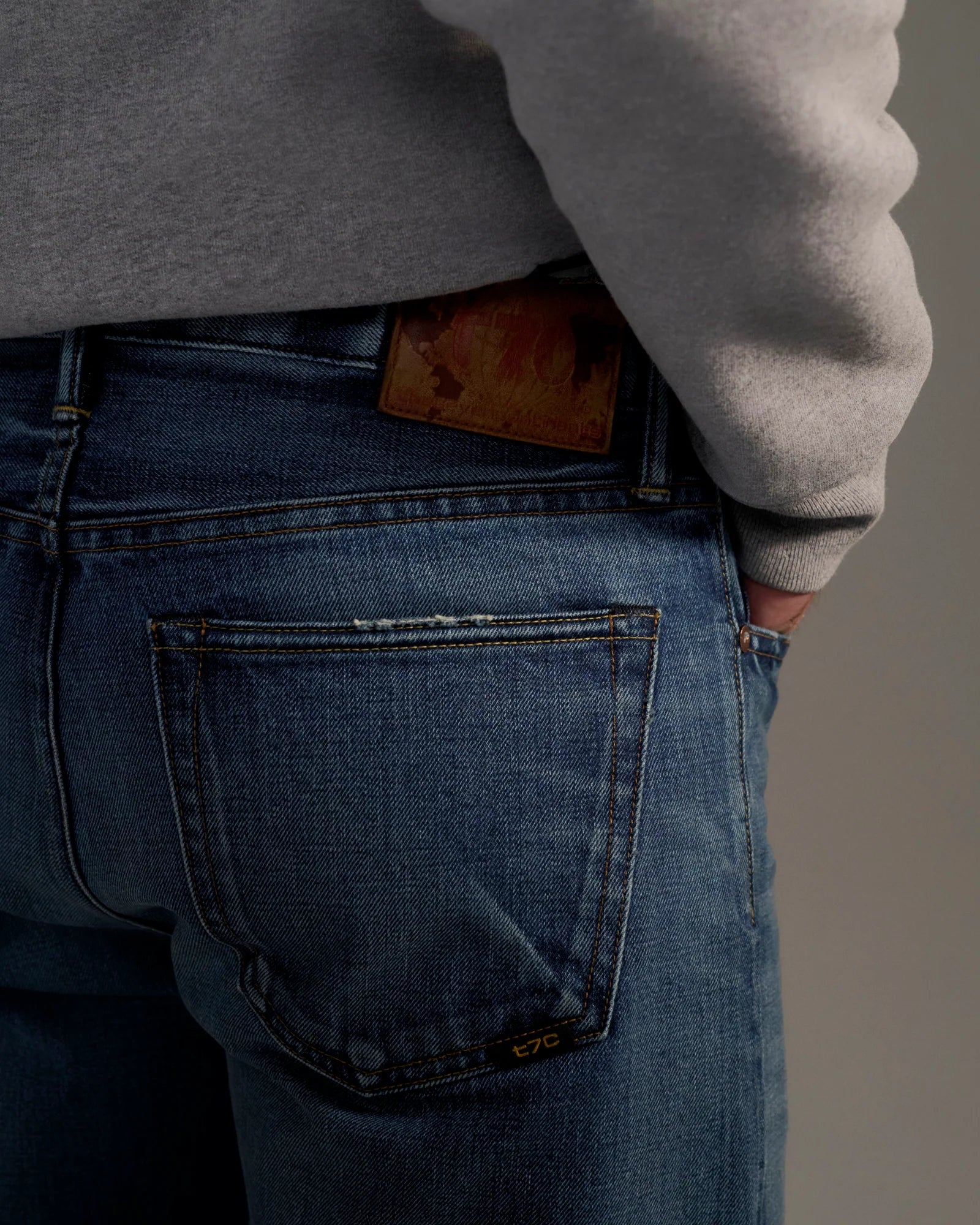A slim fit cut with a clean side seam and gentle shaping at the inseam. Crafted in LA from a 13 oz Japanese selvedge denim inspired by late-60s Big E-era denim. Straight and uneven yarns create long-slub texture with nuanced highs and lows that develop character as they age.