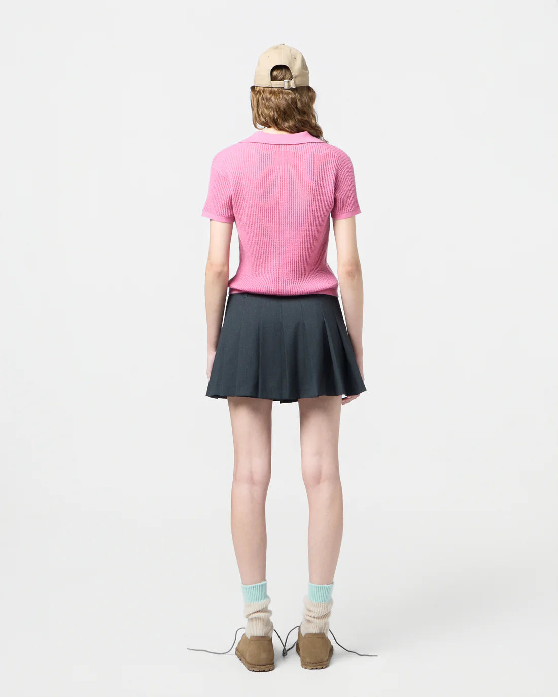 THE SHRUNKEN POLO IS A CORE GUEST IN RESIDENCE CASHMERE STYLE WITH OUR SIGNATURE LIGHTWEIGHT WAFFLE KNIT. THIS WOMEN’S PREPPY CASHMERE POLO SWEATER TRANSITIONS FROM TAILORED OFFICE LOOKS TO CASUAL WEEKEND WEAR, EFFORTLESSLY WORN WITH JEANS.