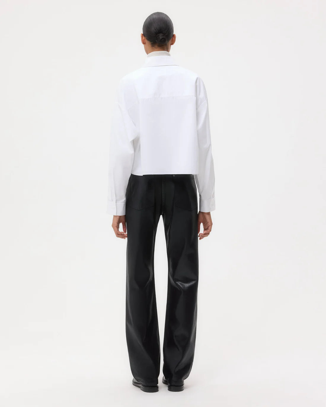 Cropped long-sleeve button-down in cotton poplin. The Soon To Be Ex features a boxy silhouette with a tuxedo-style bib. Complete with an exposed button-up placket, chest patch pocket, and single-pick up button cuffs.