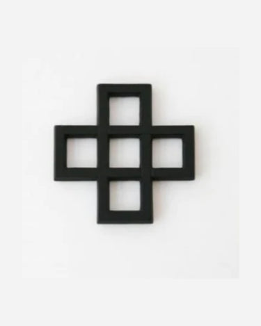 Black cross trivet made of Japanese cast iron.