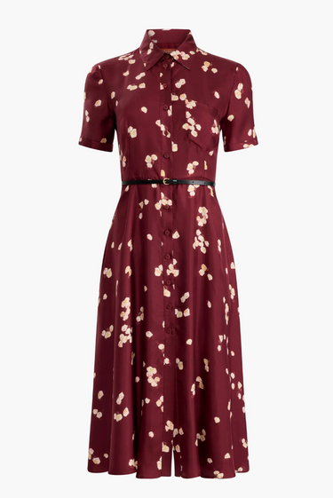 The Kiera dress is shaped from silk to an airy A-line silhouette. Designed with a small point collar and short sleeves, it's finished with a slim waist belt and a dainty floral print.